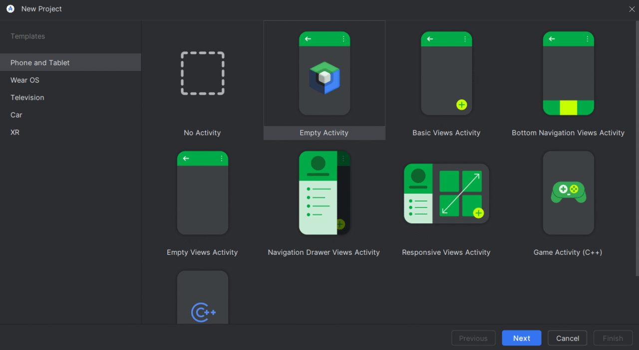 - En el diálogo de bienvenida, selecciona “Create New Project”.